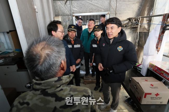 이날 김진태 지사는 겨울철 폭설로 인한 주거용 비닐하우스 붕괴 위험 여부를 점검하고, 거주지 내 난방기기와 소화기 작동상태 등 화재 예방을 위한 안전 점검을 실시했다.