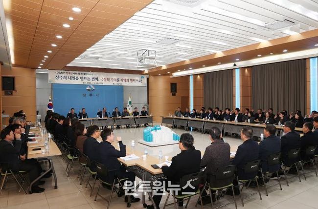 (원투원뉴스) 상주시는 지난 1월 13일 37개 부서장, 24개 읍‧면‧동장 및 국·소장이 참석한 가운데 2026년 병오년 첫 확대간부 회의를 시청 대회의실에서 개최했다.