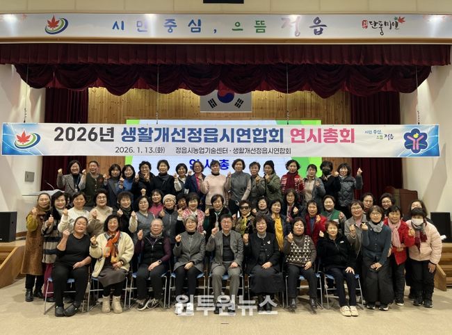 (원투원뉴스) 생활개선정읍시연합회(회장 안경순)가 지난 13일 정읍시농업기술센터에서 대의원 50여 명이 참석한 가운데 2026년도 연시총회를 열고 힘찬 새해 출발을 알렸다.