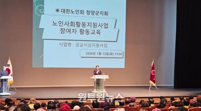(원투원뉴스) (사)대한노인회 청양군지회가 지난 13일 문화예술회관에서 공공시설지원사업 참여자 550명을 대상으로 노인일자리사업 참여자 교육을 실시했다고 밝혔다.