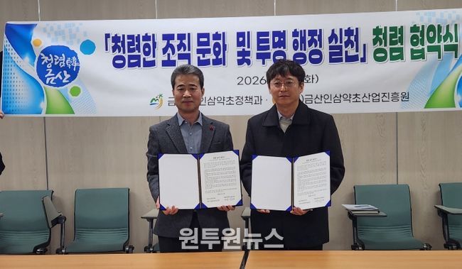 군 관계자는 “올해는 안전성 검사 기반의 유통 체계가 본격 시행되는 중요한 해인 만큼 진흥원과의 유기적인 협력이 무엇보다 중요하다”며 “오늘 협약한 청렴 정신을 바탕으로 금산인삼 산업의 투명성을 높일 수 있는 정책을 추진하겠다”고 말했다.