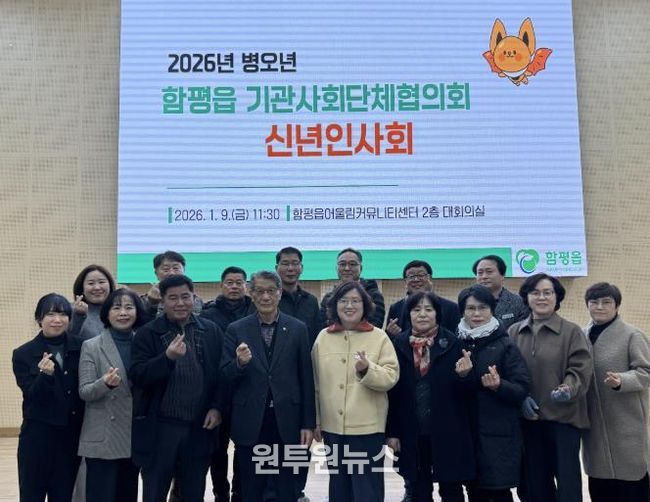 (원투원뉴스) 전남 함평군은 “지난 9일 병오년 새해를 맞아 함평읍어울림커뮤니티니센터 2층 대회의실에서 ‘2026년 함평읍 기관·사회단체협의회 신년 인사회’를 개최했다”고 14일 밝혔다.