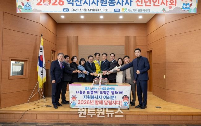 시는 14일 송학동 행정복지센터 대회의실에서 '2026년도 익산시 자원봉사자 신년인사회'를 개최하고, 자원봉사자들과 함께 새해 자원봉사 실천 의지를 다졌다.