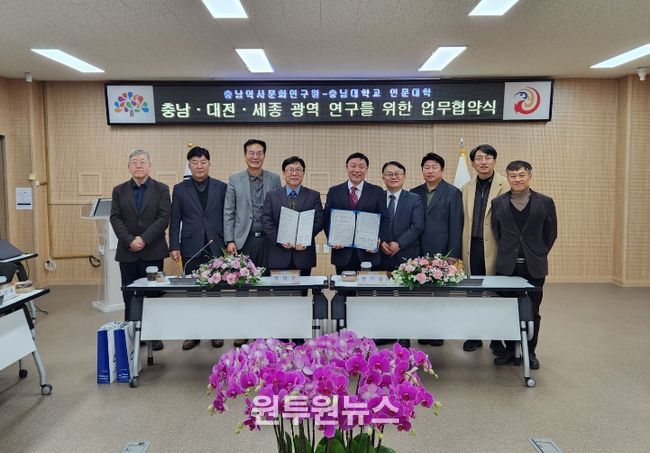 (원투원뉴스) 충남역사문화연구원(원장 장기승)은 지난 1월 13일 충남대학교 인문대학(학장 정양수)과 ‘충남·대전·세종 초광역 인문사회 연구 강화를 위한 업무협약’을 체결했다.
