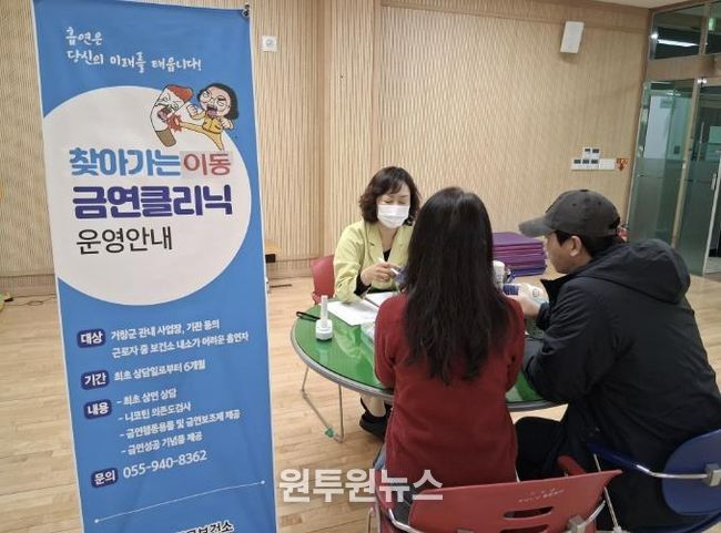 이 프로그램은 업무나 일상생활로 인해 보건소 방문이 어려운 직장인과 주민들을 위해 금연상담사가 현장을 찾아 상담을 제공하는 맞춤형 서비스다. 금연을 희망하는 흡연자 5명 이상인 사업장이나 단체라면 신청 가능하며, 면 지역은 3명 이상이면 참여할 수 있다.