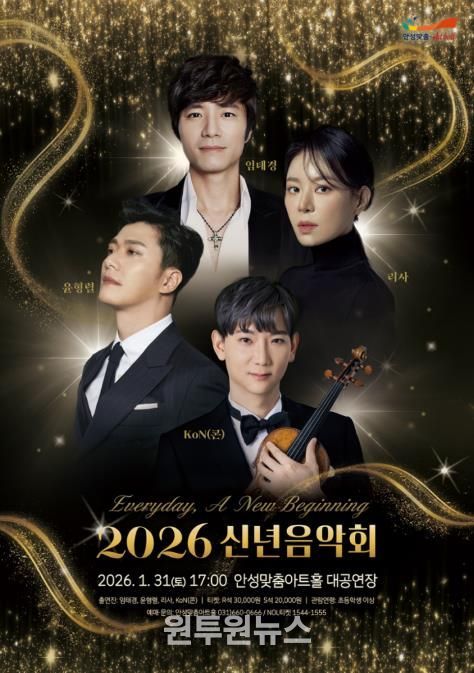 (원투원뉴스) 안성맞춤아트홀이 2026년 새해의 문을 여는 첫 기획공연 ‘2026 신년음악회’를 오는 1월 31일 오후 5시, 안성맞춤아트홀 대공연장에서 선보인다.
