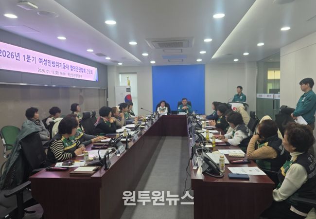 (원투원뉴스) 여성민방위기동대 합천군연합회(회장 김미자)는 13일 오후 4시 합천군 관제센터 3층 회의실에서 2026년 1분기 간담회를 개최했다.