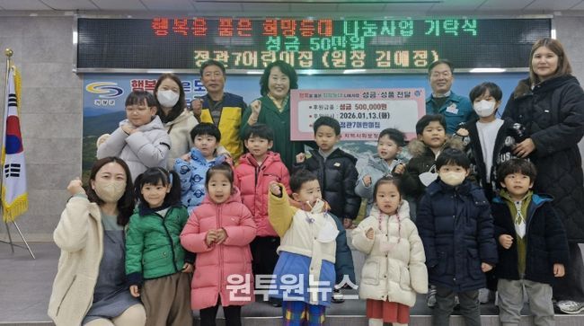 (원투원뉴스) 기장군 정관읍행정복지센터는 지난 13일 정관7어린이집(원장 김애정)이 관내 취약계층 지원을 위한 성금 50만원을 기탁했다고 14일 밝혔다.