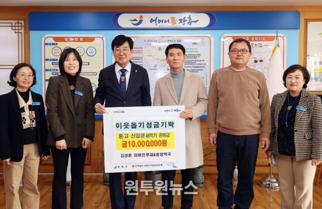 (원투원뉴스) 장흥군 김성훈 이비인후과(김성훈 원장)와 중앙약국(박정민 약사)이 14일 저소득가정 중·고등학교 신입생을 위해 1,000만 원을 기부했다.
