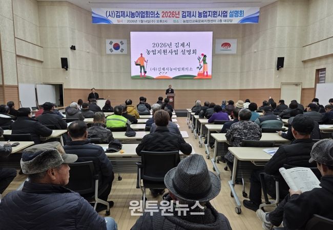 (원투원뉴스) 김제시는 달라지는 농업정책을 알려주고 올바른 영농계획 활용을 위한 2026년 농업지원 사업 설명회를 개최했다고 밝혔다.
