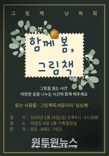 (원투원뉴스) 양주시 덕정도서관은 오는 1월 16일 16시부터 17시 30분까지, 도서관 1층 가족열람실에서 그림책 낭독회 '함께 봄, 그림책'을 운영한다.
