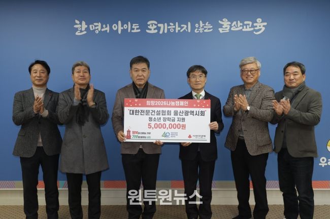 천창수 교육감은 “해마다 따뜻한 나눔을 실천해 주신 대한전문건설협회 울산광역시회에 감사드린다”라며 “학생들이 어려운 여건 속에서도 학업에 전념하며 자신의 꿈을 키워가는 데 큰 힘이 될 것”이라고 말했다.