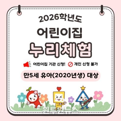 (원투원뉴스) 대구교육청 유아교육진흥원은 1월 19일부터 23일까지 대구 지역 어린이집을 대상으로 ‘2026학년도 단체 누리체험 및 안전체험’신청을 접수한다.