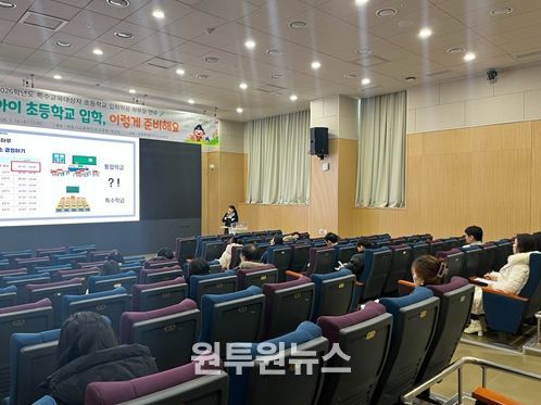 연수에서는 ▲초등학교 생활 적응을 위한 준비 사항 ▲가정에서의 지도 방향과 학부모의 역할 ▲개별화교육계획 수립 및 특수학급 운영 전반 ▲특수교육 관련 지원 서비스 안내 등 입학 초기 학부모에게 필요한 실질적인 정보가 제공됐다.