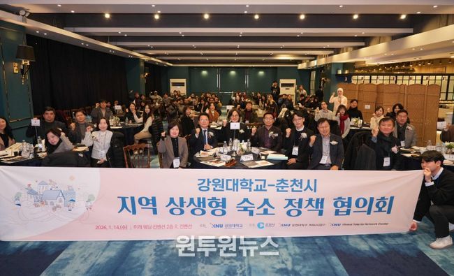 강원대 KNU 글로벌인재네트워크센터 주관으로 지난 14일 미래웨딩컨벤션에서 ‘강원대학교-춘천시 지역 상생형 숙소 정책협의회’가 열렸다. 이 자리에서는 춘천시는 그간 강원대와 추진해 온 외국인 유학생 취업연계형 인턴십 사업의 운영 성과와 향후 확대 방향이 소개됐다. 행사에는 인턴십에 참여한 외국인 유학생과 기업 관계자를 비롯해 춘천시, 강원대 관계자 등 100여 명이 참석했다.