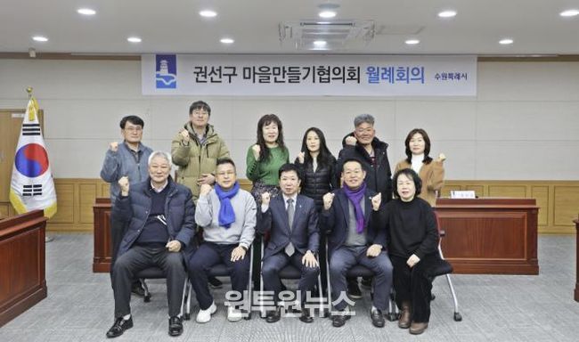 (원투원뉴스) 수원시 권선구 마을만들기협의회는 지난 12일 권선구청에서 2026년 새해 첫 월례회의를 개최하고 주민 주도의 마을 공동체 활성화를 위한 본격적인 행보에 나섰다.