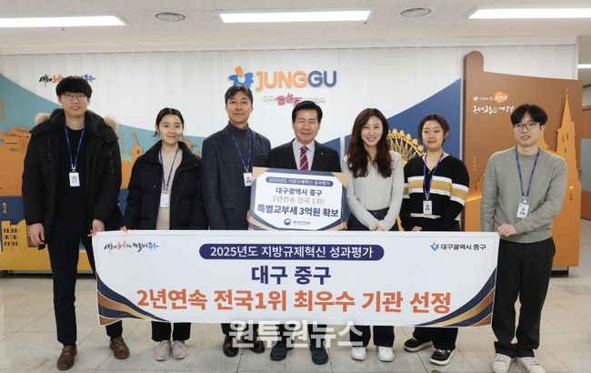 (원투원뉴스) 대구 중구는 행정안전부가 주관한 ‘2025년 지방규제혁신 성과평가’에서 2년 연속 최우수 기관으로 선정되며 규제혁신 선도 도시로서의 위상을 다시 한번 입증했다.
