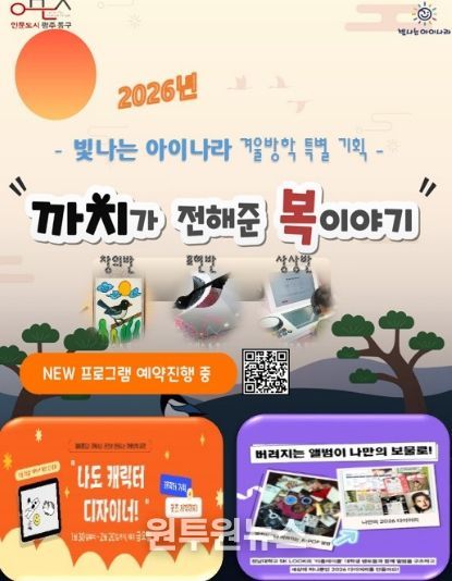 동구 관계자는 “빛나는 아이나라는 아이들이 놀이처럼 예술과 기술을 접하며 성장할 수 있는 도심 속 문화 놀이터”라면서 “겨울방학 동안 가족이 함께 참여해 의미 있는 추억을 만들 수 있는 시간이 되길 바란다”고 말했다.