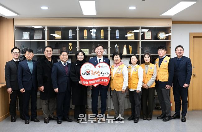 (원투원뉴스) 대전 중구는 15일 중구청 구민사랑방에서 2026년도 적십자 특별회비 전달식을 개최했다고 밝혔다.