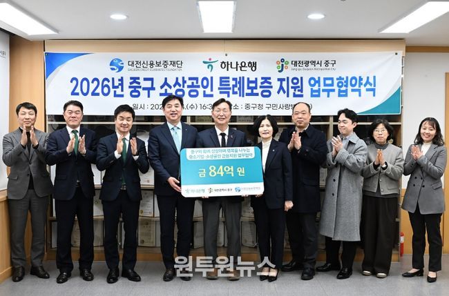 (원투원뉴스) 대전 중구는 지난 2024년과 2025년에 이어 올해에도 중구 관내 소상공인 경영안정자금 지원을 위해 대전신용보증재단, 하나은행과 협약을 맺고 총 84억 원 규모의 소상공인 특례 보증을 지원한다고 15일 밝혔다.