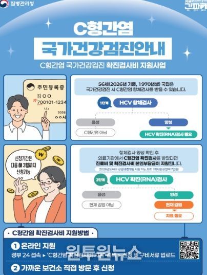 (원투원뉴스) 고양특례시 일산서구보건소는 질병관리청의 C형간염 관리 강화 방침에 따라, 2026년부터 국가건강검진 C형간염 항체 양성자에 대한 ‘확진검사비 지원 사업’이 종합병원 및 상급종합병원까지 확대 시행된다고 밝혔다.