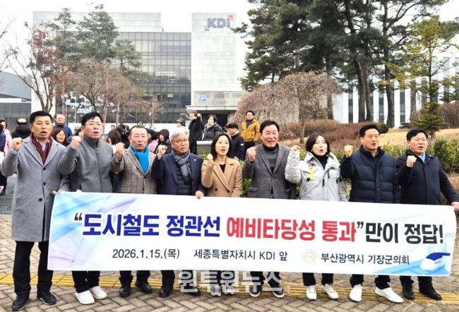 (원투원뉴스) 기장군의회는 1월 15일 오후1시 세종시 소재 한국개발연구원(KDI) 정문에서 도시철도 정관선 예비타당성조사 통과를 강력 촉구했다.