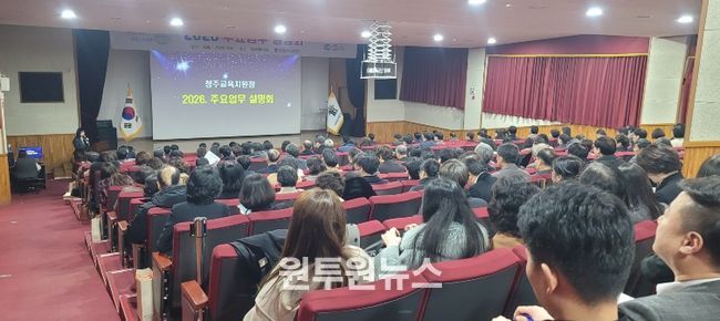(원투원뉴스) 청주교육지원청은 1월 15일 관내 유‧초‧중‧특수 학교관리자 165명를 대상으로 2026년도 주요업무 설명회를 개최했다.