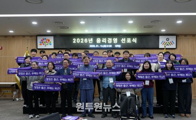 (원투원뉴스) 충청남도 출연기관 한국유교문화진흥원(원장 정재근)은 2026년 신년을 맞아 개원 이후 3년간의 성과를 공유하고, 중·장기 발전 방향과 윤리경영 실천 의지를 함께 다지는 전 직원 참여 워크숍 및 윤리경영 선포식을 1월 14일부터 15일까지 이틀간 한유진 대학당에서 개최했다.