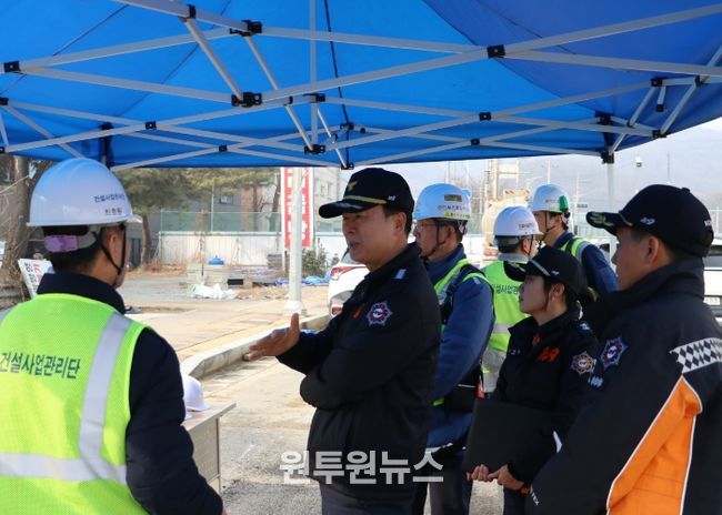 이날 소방서는 공사 관계자들과 함께 ▲공사현장 화재·재난 위험요소 사전 차단 ▲지하 굴착 및 구조물 안전관리 실태 중점 점검 ▲사고 예방을 위한 지속적·상시 안전관리 이행 사항 ▲유사 사고 재발 방지를 위한 관리체계 정착 여부 등을 꼼꼼히 점검했다.