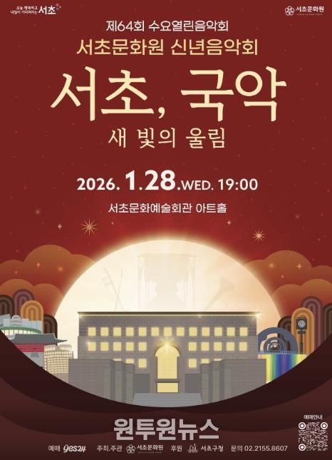 (원투원뉴스) 서울 서초구가 2026년 ‘붉은 말의 해’를 맞아 구민들에게 희망과 감동을 전할 특별 신년음악회를 연이어 개최한다고 밝혔다. 1월과 2월에 걸쳐 진행되는 이번 신년음악회는 새해의 힘찬 출발을 알릴 수 있도록 우리 고유의 국악과 정통 클래식을 넘나드는 다채로운 아티스트들의 무대들로 꾸며질 예정이다.