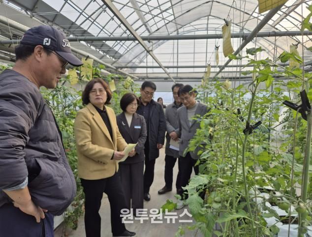 이날 조 원장은 탄부면 벽지리에 위치한 달빛농장을 방문해 토마토 생육 상황을 점검하고 현장 애로사항을 청취했다.