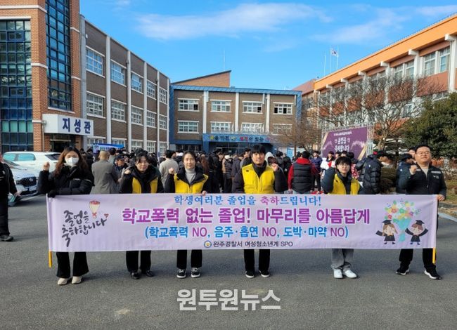 행사는 졸업식 당일 학교 정문과 진입로 등 청소년 밀집지역을 중심으로 진행되며, 청소년 폭력 및 비행 예방 캠페인과 함께 완주경찰서와 합동 순찰을 병행해 현장 중심의 예방 활동을 강화했다.