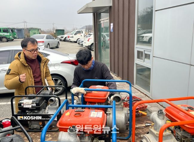 합동 점검반은 읍·면에서 보유하고 있는 양수기의 상태를 점검하고, 소모품 교체와 수리 등을 진행해 즉시 사용이 가능하도록 정비했다.