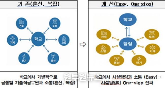 그동안 학교 현장에서는 시설물에 문제가 발생할 경우 건축, 토목, 전기, 기계 등 공종별로 세분화된 교육지원청 담당자를 일일이 확인해 협의해야 하는 불편을 겪어왔다. 특히 시설 노후화와 안전 점검 강화로 인해 전문적인 기술 행정 지원에 대한 현장의 요구가 지속적으로 제기되어 왔다.