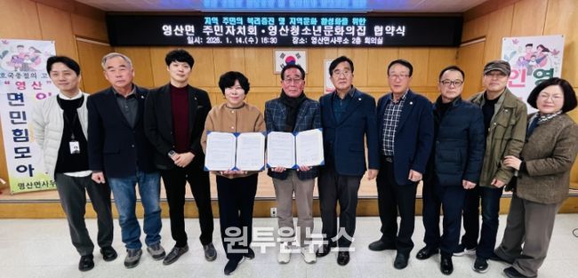 (원투원뉴스) 창녕군 영산면 주민자치회(회장 김경호)와 영산청소년문화의집은 지난 14일 주민 복리 증진과 지역 문화 활성화를 위한 업무협약을 체결했다.
