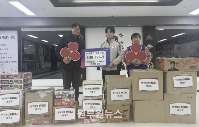 (원투원뉴스) 한국체대MTA태권도가 지난 15일 지역 내 어려운 이웃을 돕기 위해 라면 776개를 옥정2동 행정복지센터에 기탁했다.