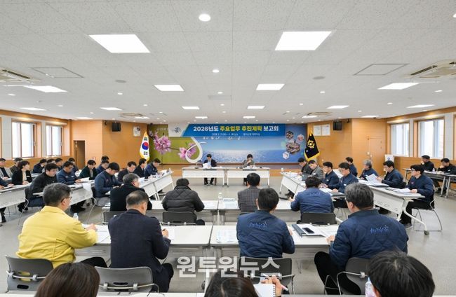 (원투원뉴스) 영덕군은 지난 15일과 16일 이틀간 김광열 군수를 비롯해 황인수 부군수, 부서장과 담당 팀장 등 주요 간부들이 참석한 가운데 2026년 주요 업무 계획 보고회를 개최했다