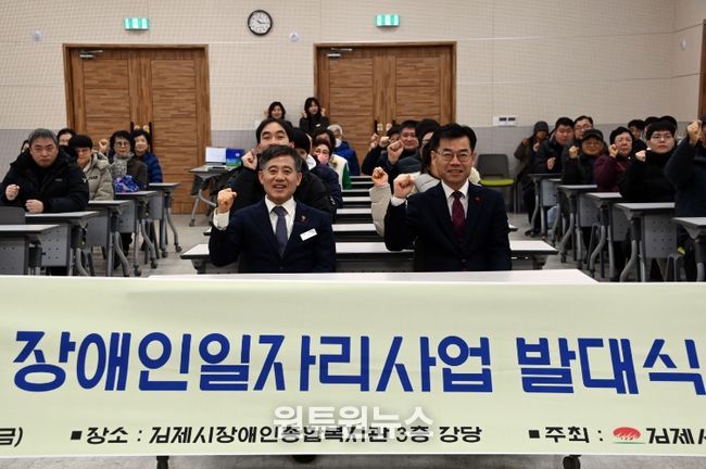 (원투원뉴스) 김제시는 김제시장애인종합복지관(관장 박승택)이 16일 복지관 3층 강당에서 장애인일자리사업 참여자 75명 등이 참석한 가운데 2026년 장애인일자리사업 발대식 및 참여자 교육을 개최했다고 밝혔다.
