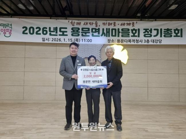 홍명기 용문면장은 “매년 변함없이 이웃사랑을 실천해 주시는 새마을회 회원 여러분께 깊이 감사드리며, 이러한 나눔이 어려운 이웃들에게 큰 힘과 희망이 되길 바란다”며 “기탁해 주신 소중한 성금은 도움이 꼭 필요한 분들을 위해 투명하고 공정하게 사용하겠다”고 전했다.