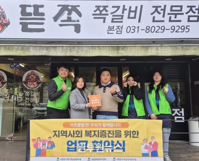 (원투원뉴스) 평택시 서정동 지역사회보장협의체는 지난 14일, 서정동에 있는 음식점 ‘뜯쪽!’을 '우리동네 착한가게'로 지정하고 현판 전달과 함께 지역사회 복지증진을 위한 협약을 체결했다.