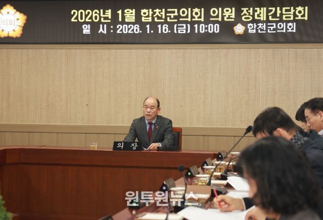 이날 정례간담회에서 정봉훈 의장은 “전 의원과 공직자께서는 병오년 새해, 군민을 위한 의정과 군정 실현을 위해 ‘2026년도 군민과의 대화’의 업무추진에 만전을 기하여, 군민이 더욱 살기 좋은 합천군으로 이끌어 주실 것을 당부한다.”고 전했다.