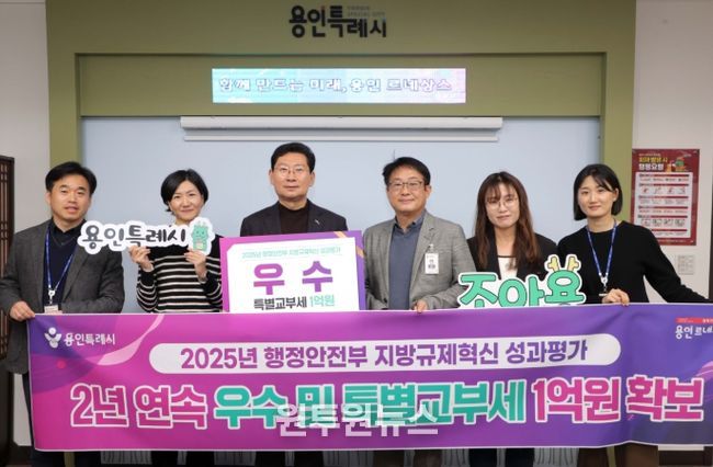 (원투원뉴스) 용인특례시는 지난해에 이어 ‘지방규제혁신 성과평가’에서 우수 기관으로 선정돼 특별교부세 1억 원을 확보했다고 16일 밝혔다.