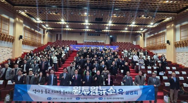 (원투원뉴스) 경상북도경주교육지원청은 2026년 1월 16일 오전 10시, 경주시 화랑마을 기파랑관에서 '2026 경주교육 설명회'를 개최했다.