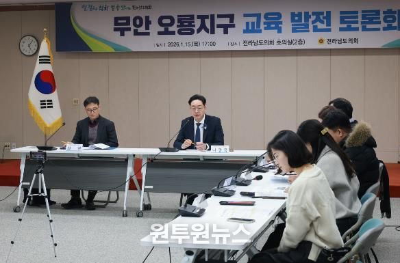 (원투원뉴스) 나광국 전남도의원(더불어민주당·무안2)은 지난 1월 16일 전남도의회 초의실에서 전남도교육청 관계자와 무안군 남악오룡지구 학부모 11명을 초청하여 각종 교육현안에 대해 논의하는 간담회를 개최했다.