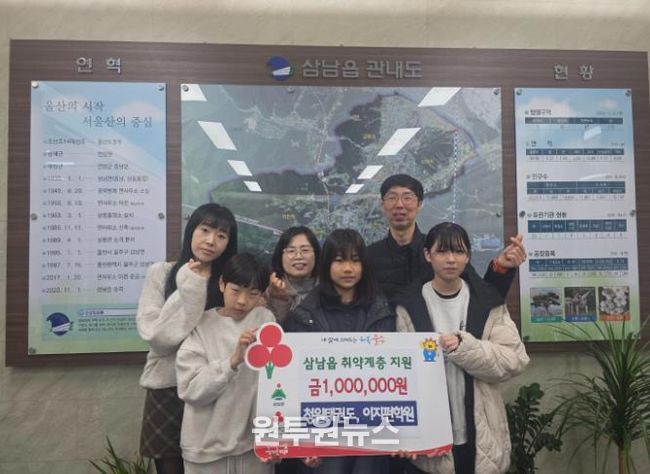 (원투원뉴스) 울주군 삼남읍에 소재한 청원태권도와 이지펀학원이 16일 삼남읍 행정복지센터에 지역 저소득층을 위한 성금 100만원을 기탁했다.