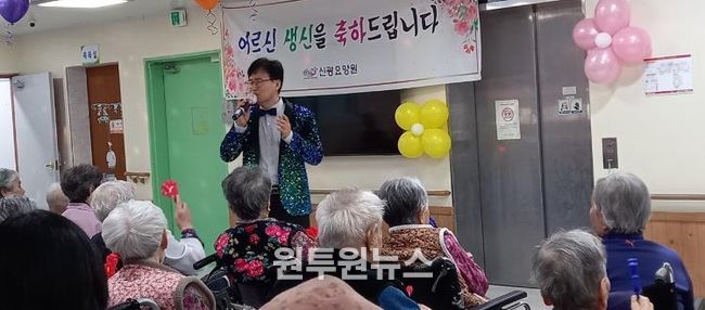 실제 이날 신광요양원에서 어르신 정서 지원을 위해 '찾아가서 함께하는 효사랑 잔치'를 열고, 율동과 웃음치료, 건강 박수 배우기 등을 진행했다.