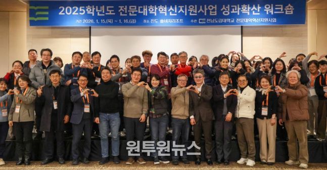 (원투원뉴스) 전남도립대학교는 16일까지 이틀간 진도 쏠비치 리조트에서 교직원 100여 명이 참여한 가운데 전문대학혁신지원사업 성과확산 워크숍을 열어 통합대학 출범 대비 교육혁신 연계 전략을 논의했다.