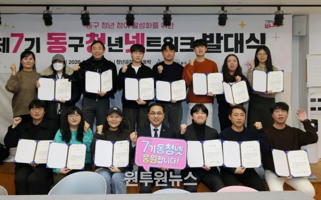 박희조 동구청장은 “지역에 대한 관심과 열정을 가진 청년들이 자발적으로 참여해 준 만큼, 제7기 청년네트워크의 역할이 더욱 기대된다”며 “청년 간 소통과 협력을 바탕으로 실효성 있는 청년정책이 발굴될 수 있도록 적극적인 활동을 당부드린다”고 말했다.