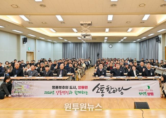행사의 첫 순서로는 지난 한 해 양동면의 주요 성과를 공유하는 시간이 마련돼 △양동 일반산업단지 조성 △양동 지하수 저류댐 신설 △동부권 채움사업 및 지역균형발전사업 추진 △양평부추축제의 성공적 개최 등 주요 실적을 면민들과 함께 돌아봤다.