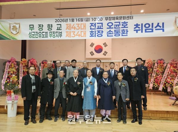 (원투원뉴스) 고창군 무장향교가 16일 제43대 오균호 전교와 제34대 손동환 유도회장 취임식을 열었다.